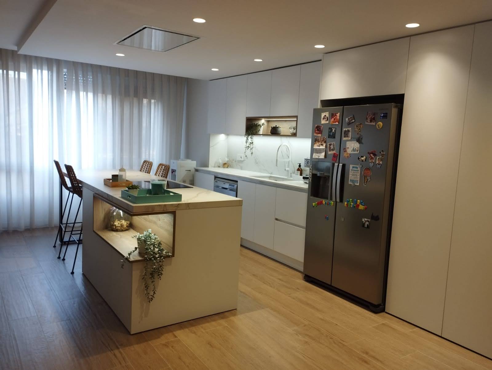 Reforma integral de zona de día de este piso situado en el centro de la ciudad, en un edificio de unos 30 años de antigüedad.